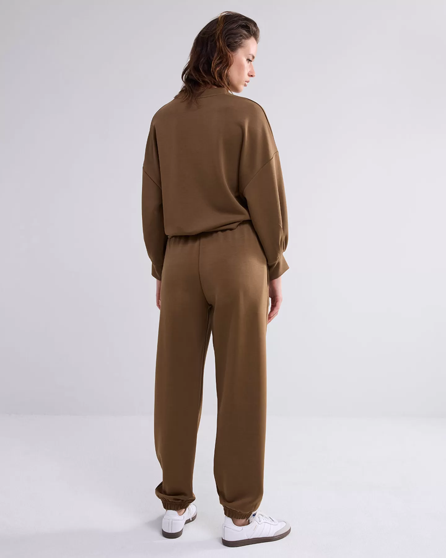Jogger pants gemaakt van gewassen modal scuba stof. Deze broek heeft elastische boorden en een koordsluiting in de taille.
