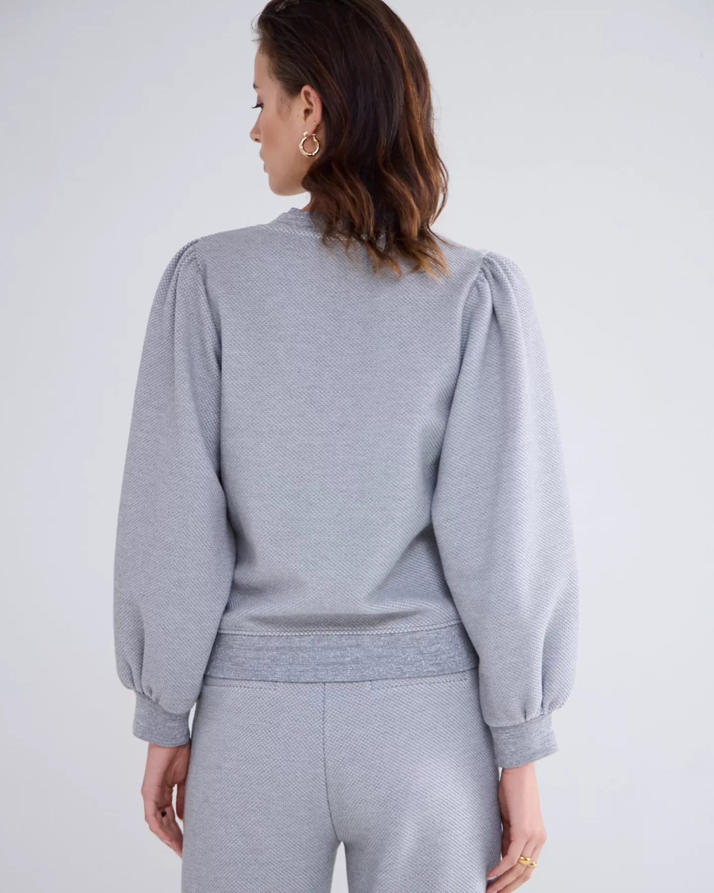 Vest met normale pasvorm en 7/8 ballonmouwen, voorzien van knoopsluiting. Gemaakt van comfortabele wafelstructuur jersey kwaliteit, waarbij de boorden zijn uitgevoerd in metallic ribbreiwerk.